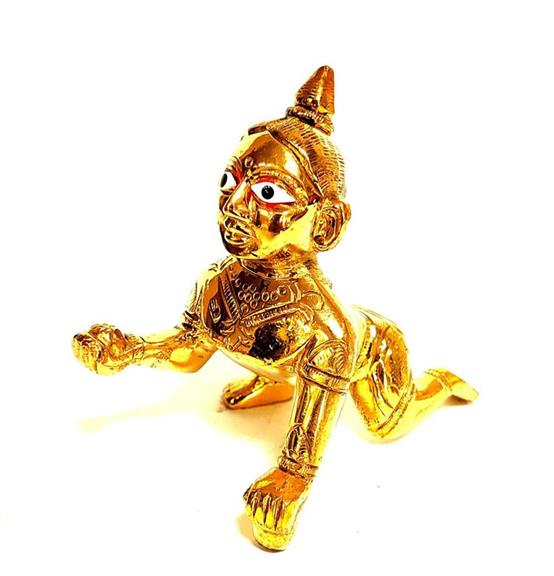 An adorable baby lord krishna Idol, made of 100% solid brass material. Lord Krishna was a divine personality believed to have taken Avtar 3000 yrs BC. His story is a source of joy and inspiration for people from all walks of life in whole world. His greatest tecahing is to do karma and move on the path of truth with smile.